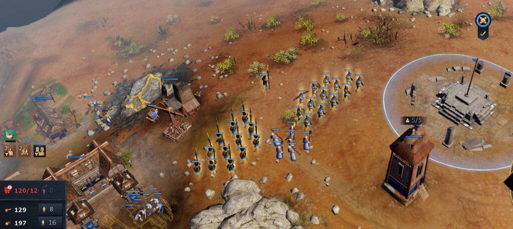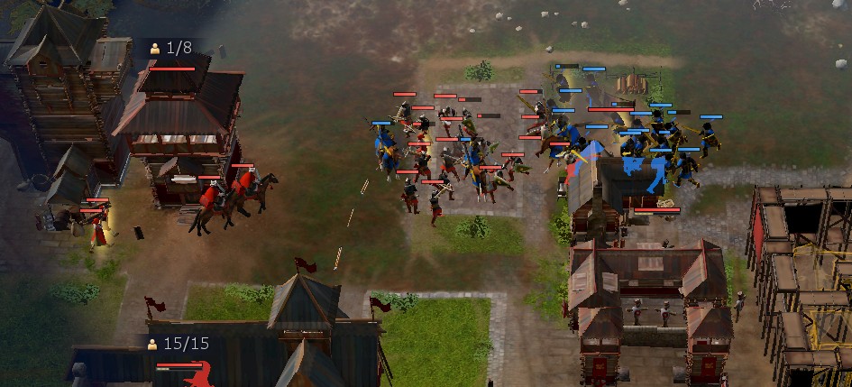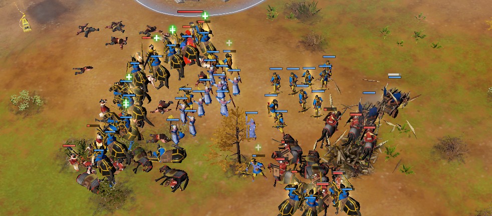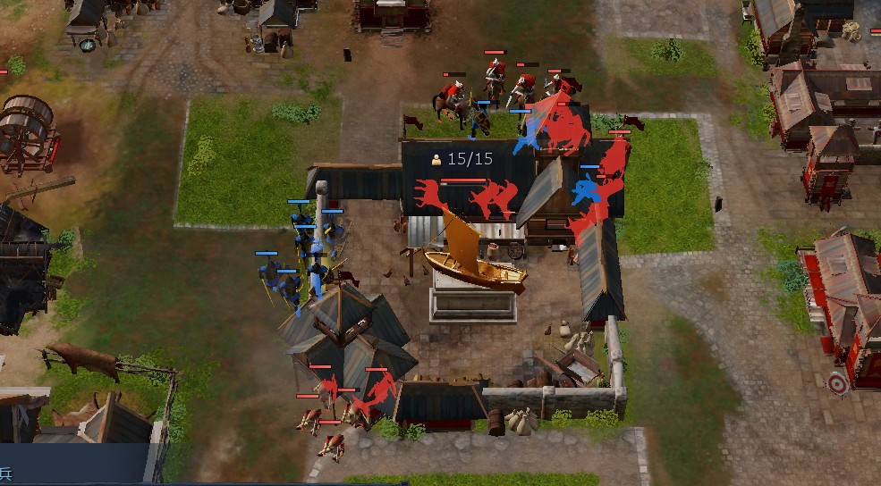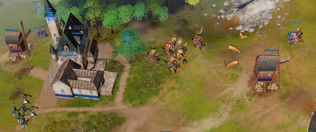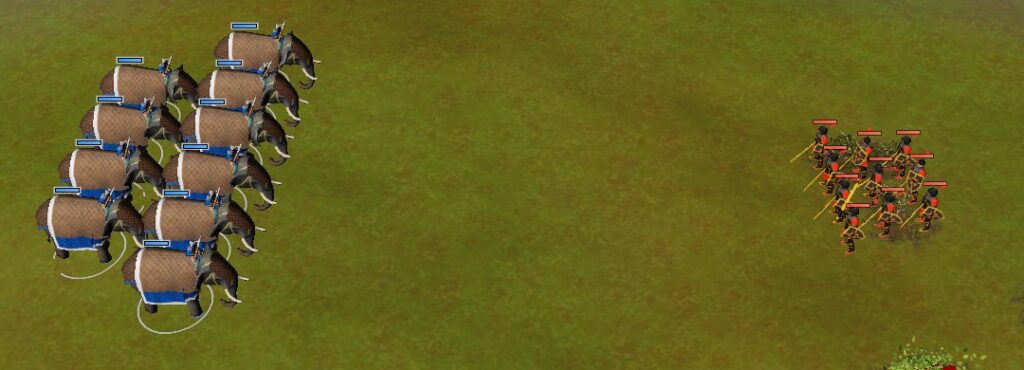 相手の時代進化が遅いので、それへの対抗兵としてそのまま弓槍生産が長く続いていく。セルジェアントと騎乗兵に対しては。