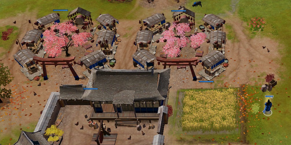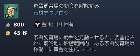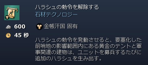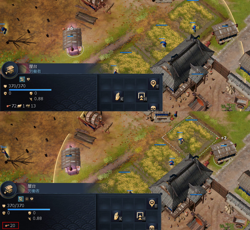 基本軍編成が軍兵と騎乗兵タイプになりやすいここでの文明の場合、食料を多く消費し金ピカ農民生産でも多少上乗せされ、畑作移行期の足止めが非常に苦しく感じる。