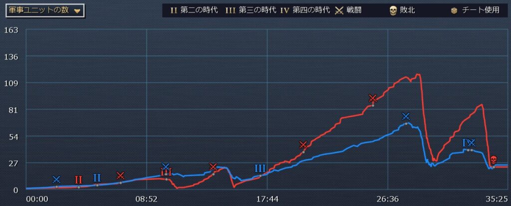 今回は先に軍グラフを載せるけど、ちょっとあまり想定しない相手の軍事行動にあとで驚く。