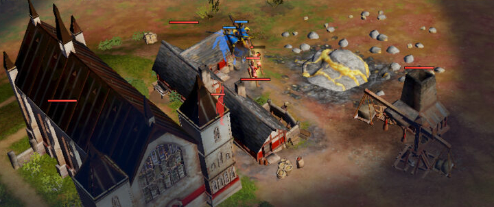最初に訳分からん状況に出くわすが、即巡礼者で中央の聖地に向かわせていたこと。それはこちらの弓兵スタートとかち合って倒せていけるものの、しかしこれ無限に無料で生産されていくやつだからハラス殺傷できてもあまり効果がない。だからそれより相手TC本拠地周辺へのハラスに力を入れてく意識する。