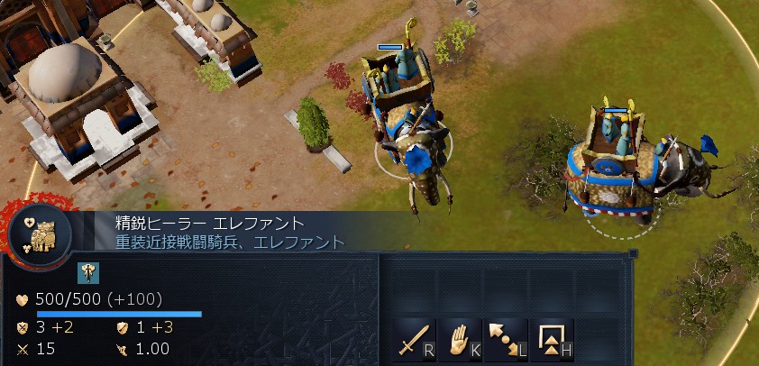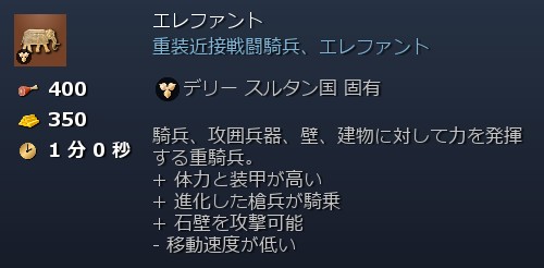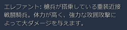 しかしやっぱりヒーラー象が出てくるしかない。これに対しては、初期軍兵や初期騎士の序盤に強力な重装ユニットで対抗していくか、実は射撃装甲1しかないのでmass弓兵での対抗か。ドラゴン騎士団だったら初期竜軍兵にして黄金の胸当ての固有テクもある。アンチの槍兵もいないとヒーラー象に対して対抗力が充分でない。