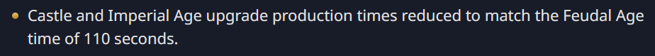 3段階テクを1つにまとめたいという主旨よりも、モンゴルの有利な序盤内政の創出になってることの方が主題だぞこれは。モンゴルで時代進化戦術が流行ってたみたいだけど、自分は領主Ⅱ時代で勝負した方が良いと思っていたから(前半戦ピークの文明だし早く軍を出して家不要ボーナスを活かしたいし)、もう説得せずとも改めるのでは。