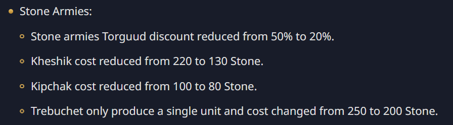 モンゴルはバフされていいなぁ。もともと強くなかったか。この文明は自分では扱いづらい文明でチャンスを逃す。