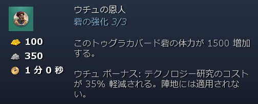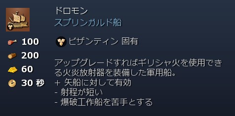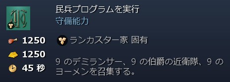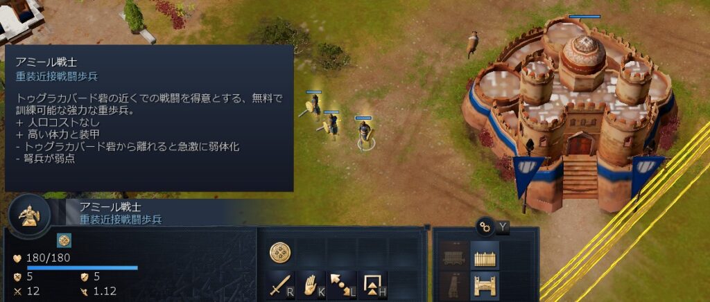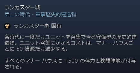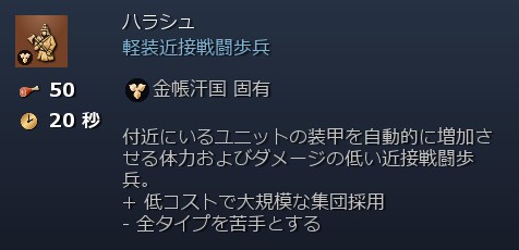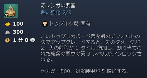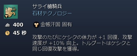 このユニットは城主Ⅲ時代に入らないと使えないが、文明メリット的に早め城主Ⅲ移行していく意向だし、文明ボーナスの聖遺物による金収入でこのユニットを生産しやすくむしろ投資先を得たことに喜ぶ。