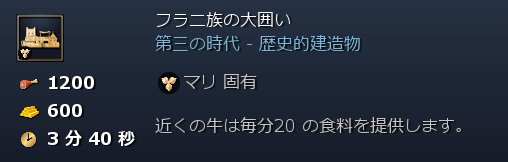 プロの斥候で鹿を調達しづらいマップや相手文明だなと思ったら、こちらの即家畜飼育場の手段を用いたい。但しコスト重いので進化ボタン後になることも考えられる。