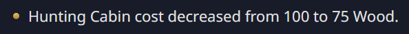 ・追加ハンモックのコスト100木250金から75木125金に減少