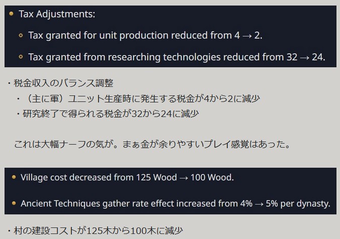 ・(主に軍)ユニット生産時に発生する税金が4から2に減少