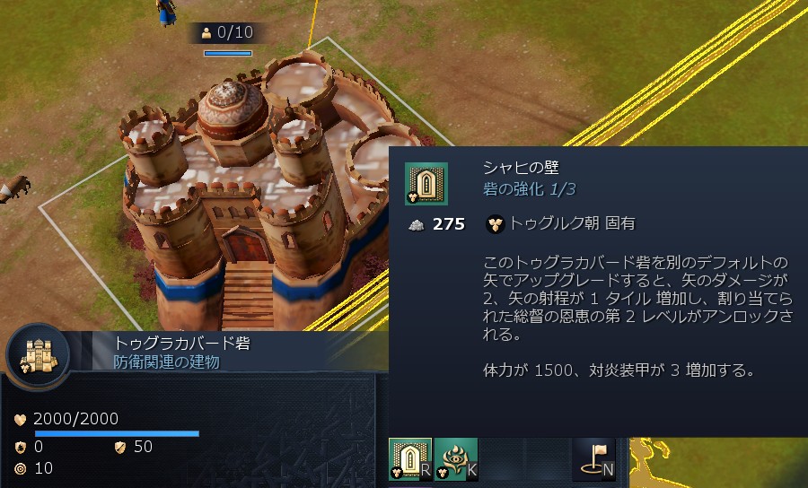 その手があったか。トゥグルク朝は領主Ⅱ時代に砦を建てることができ、タワーRに対するように建てれば、時間は掛かるけど建物からの射撃攻撃で突破することが可能でそれを狙ってきた。