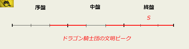 しかし即2TCブームしようとしてるなら、初期竜軍兵ハラスラッシュで荒らせるとこまで行う。日本のTCは堅いので落とそうとは思ってないし、初期竜軍兵がたまってしまうと上の大太刀の武士のエサになってしまうから程良くに。それから城主Ⅲ進化させて文明メリットの聖遺物回収や聖地支配を行っていきたい。