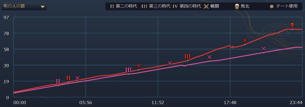 人口コストを必要としないシトー修道会で内政上限を拡大できるなら終盤戦をもう少し強く考えていいかな。その新要素はまだ自分には馴染みなくてピーク表に影響させるのを忘れる。