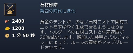 ・改良型の予備の松明テクの石材コストが500から400に減少
