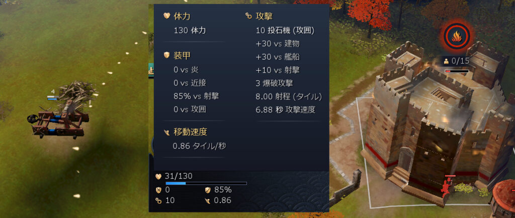 恐らく軍兵が投石機に突撃すれば同じように有利に戦えそうな気がするけど、もう今は時間ないので調べられない。