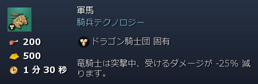 即Ⅳ帝王カウンターは竜騎士の軍馬テクで万能に対応しようかねぇ。プロの斥候で事前に騎兵育成所2つ持ってるし。たださすがに対馬特化編成に対しては(槍兵や弩兵に)投石機や砲撃手なんかで対処したい。