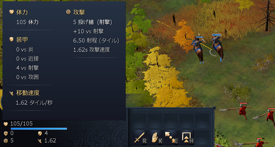 修正:騎士の突撃による移動速度アップで負けることになるな。突撃アタックボーナスでも。逃げてればなかなか死なないだけど。